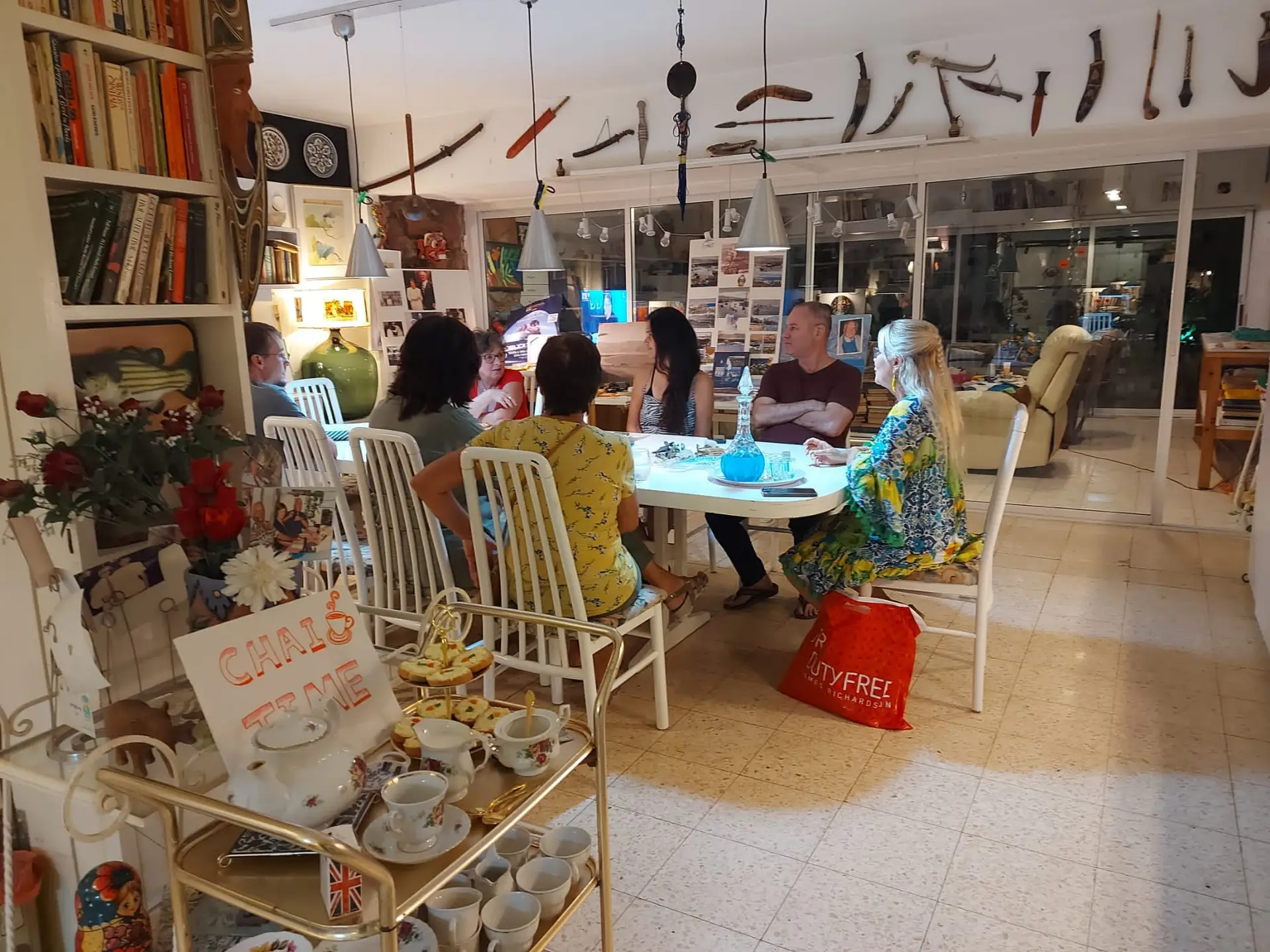 יוני אלמוג – ילידת אילת, ""בדואית צהובה"", עוסקת בחינוך, קונסולית אנגליה לשעבר, ובתו של ד"ר מוריס ופיי מוותיקי העיר אילת ומייסדיה. במפגש המרתק בבית הוריה, תשתף אתכם יוני בסיפור הבלתי-יאומן על קלרנס, התנין שגדל בחצר ביתם במשך 34 שנים, וכן במסעות יוצאי-הדופן שעברה משפחתה לאורך השנים מסביב לעולם דרך חפצים ותמונות של אילת של פעם אותם תיעד אביה ד"ר מוריס. יוני מצחיקה, משמחת ומארחת כמו שרק ""אנגליה"" יודעת באופן מסורתי עם ספלי תה אנגלי ומטעמי סקונס."